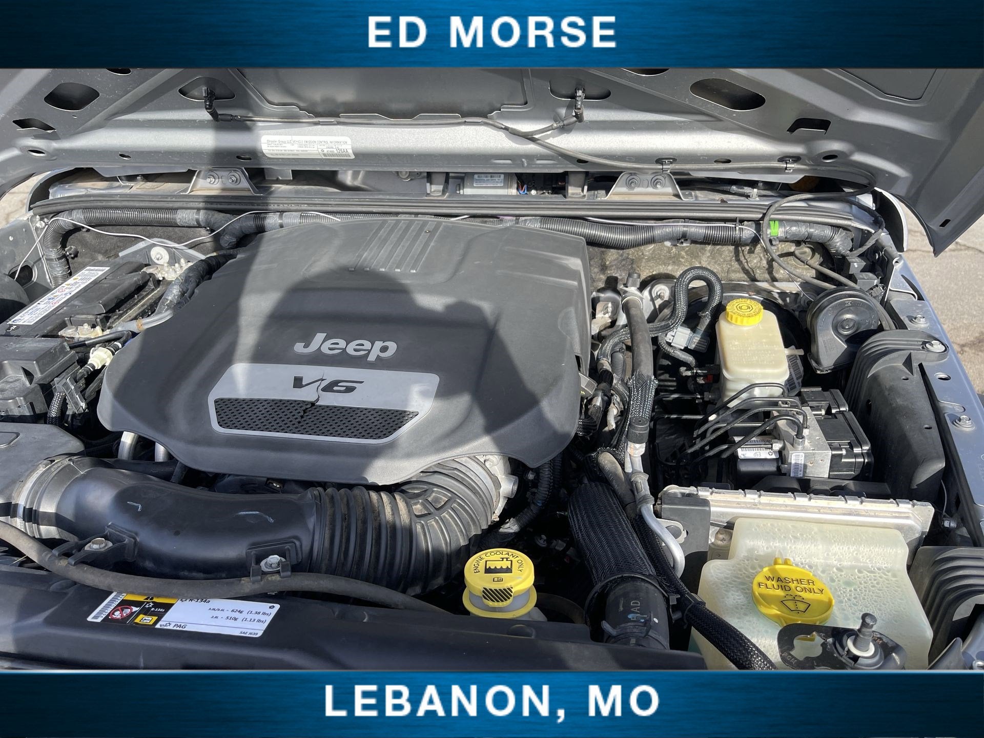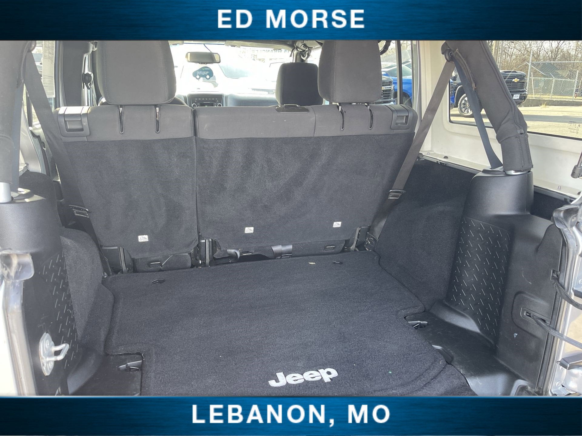 Equipped with Connectivity Group (Tire Pressure Monitoring Display, Uconnect Voice Command w/Bluetooth®, and Vehicle Information Center), Quick Order Package 24S (17" x 7.5" Aluminum Wheels, Auto-Dimming Mirror w/Reading Lamp, Chrome/Leather Wrapped Shift Knob, Deep Tint Sunscreen Windows, and Leather Wrapped Steering Wheel), Trailer Tow Group (Class II Receiver Hitch and Trailer Tow w/4-Pin Connector Wiring), Black 3-Piece Hard Top, Cloth Bucket Seats, Delete Sunrider Soft Top, Freedom Panel Storage Bag, Front 1-Touch Down Power Windows, Power Heated Mirrors, Power Locks, Radio: Uconnect 130 AM/FM/CD/MP3, Rear Window Defroster, Rear Window Wiper/Washer, Remote Keyless Entry, SIRIUS Satellite Radio, Steering wheel mounted audio controls, Tinted Rear Quarter & Liftgate Windows, 3.21 Rear Axle Ratio, 4-Wheel Disc Brakes, 8 Speakers, ABS brakes, Air Conditioning, AM/FM radio, Brake assist, CD player, Compass, Driver door bin, Driver vanity mirror, Dual front impact airbags, Electronic Stability Control, Front anti-roll bar, Front Bucket Seats, Front Center Armrest w/Storage, Front fog lights, Integrated roll-over protection, Low tire pressure warning, MOPAR Slush Mats, Normal Duty Suspension, Occupant sensing airbag, Outside temperature display, Passenger door bin, Passenger vanity mirror, Power steering, Rear anti-roll bar, Security Alarm, Speed control, Split folding rear seat, Tachometer, Tilt steering wheel, Traction control, Trip computer, and Variably intermittent wipers.